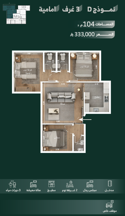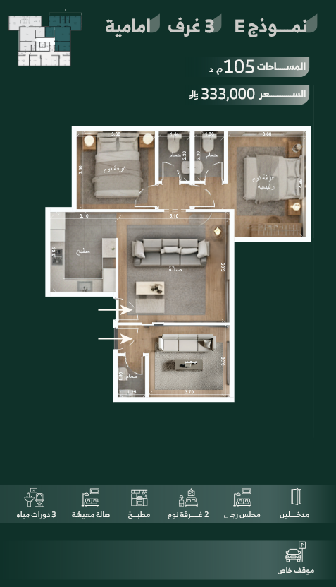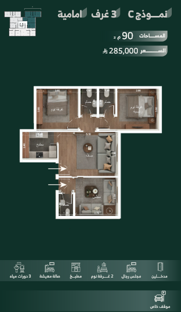 يركز المشروع على وضوح التخطيط وخصوصية المساحات ضمن موقع يتميّز بالهدوء وسهولة الوصول وتكامل الخدمات بما يعكس التزام سمـا العقارية بتقديم مشاريع ذات قيمة طويلة المدى.